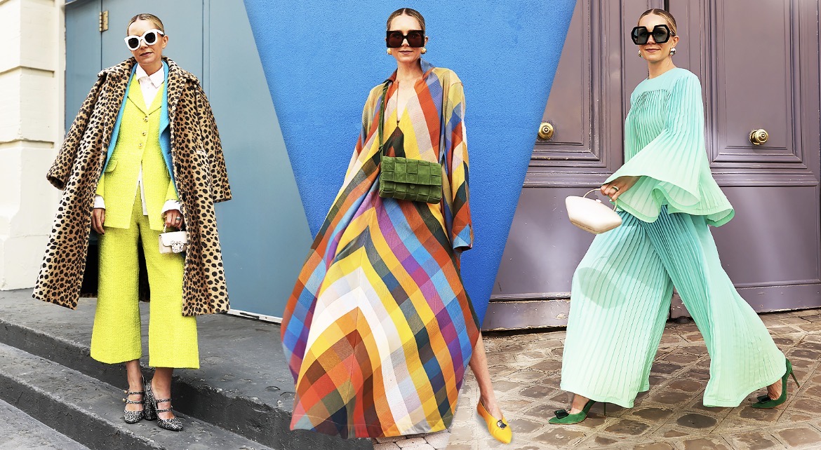 O que aprender com ela: O uso de cores vibrantes (muito verde bandeiira, rosa choque e lilás) em peças de corte reto e sofisticado.