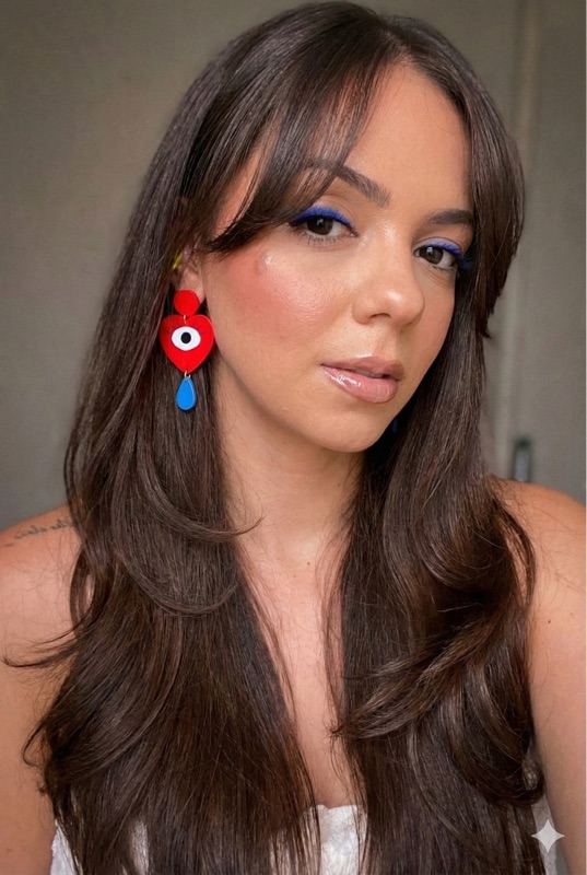 Senti que a franja cortina já deu uma cara totalmente nova ao meu visual sem eu precisar sacrificar o comprimento que eu tanto amo. O resultado foi exatamente o "glow-up" que eu planejava: me sinto mais moderna, e meu rosto oval parece mais iluminado.